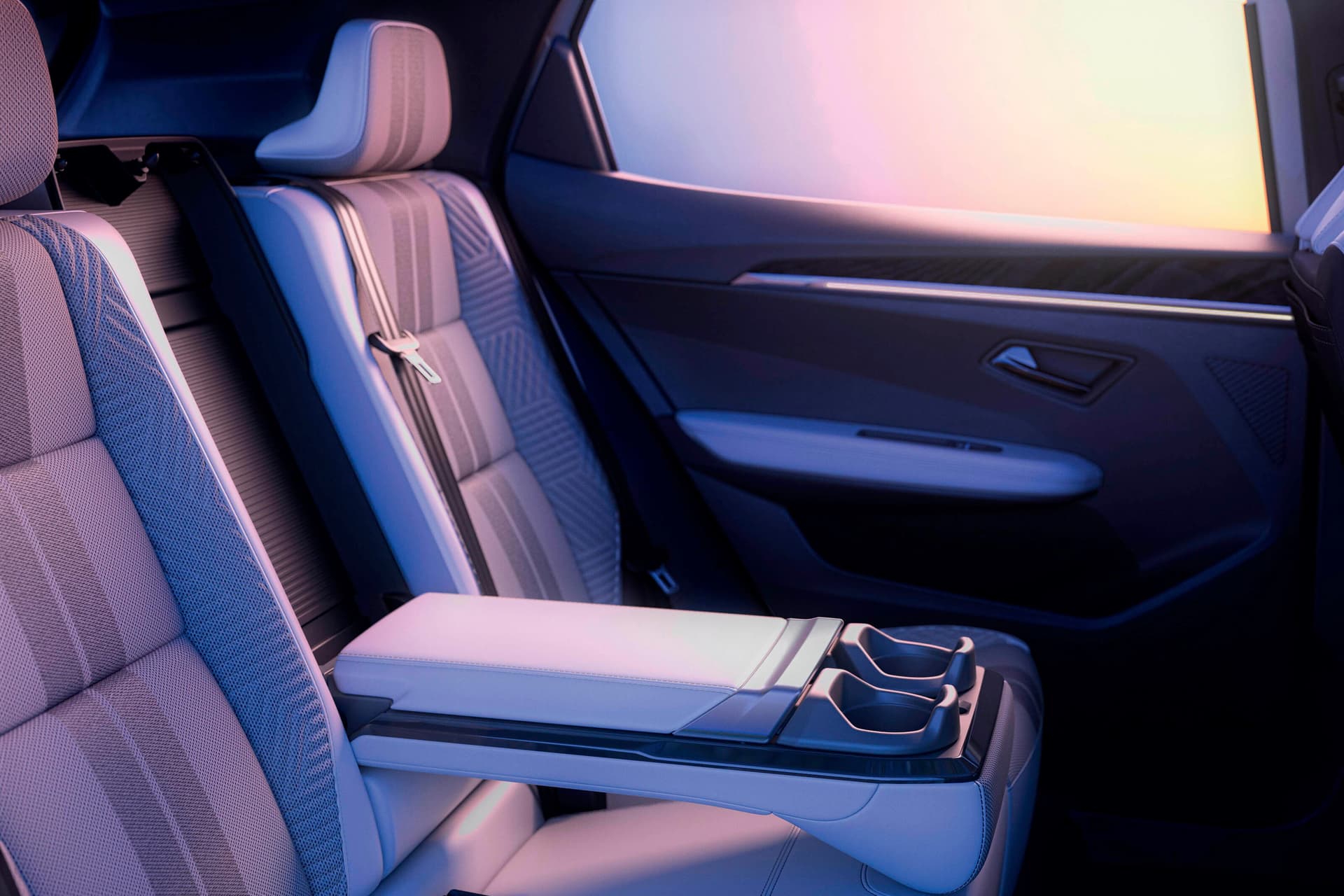 Det sammenleggbare bakre armlenet har 2 USB-C-porter og induktive trådløse ladere for mobiltelefonen din. Flere konfigurasjoner gjør det mulig å koble på alle de elektroniske enhetene dine