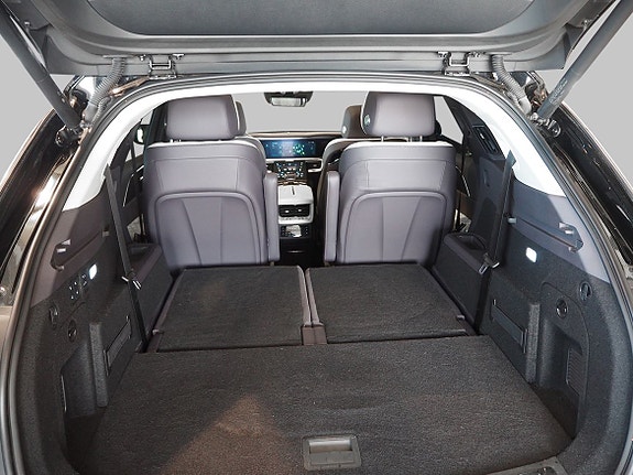 6 seterOpptil 465 km el-rekkevidde (WLTP, Combined)Firehjulstrekk99 kWh batteri (brutto), 551 HKPremium seter i Nappa skinnMassasje i forseteneVentilerte seter (1. og 2. seterad)KollisjonsvarselLuftfjæringBlindsonevarselZhilian system med tre 16,2” skjermerAutomatisk parkeringsassistent��Soft close”-dørlukkersystemAmbient lighting”Boost”-kjøremodus