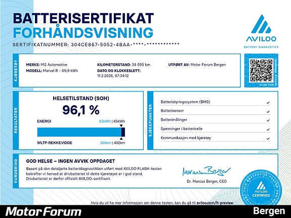 Leveres med MG sin lange nybilgaranti på 7 år / 150 000 km fra førstegangsregistrering.