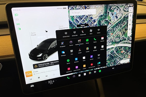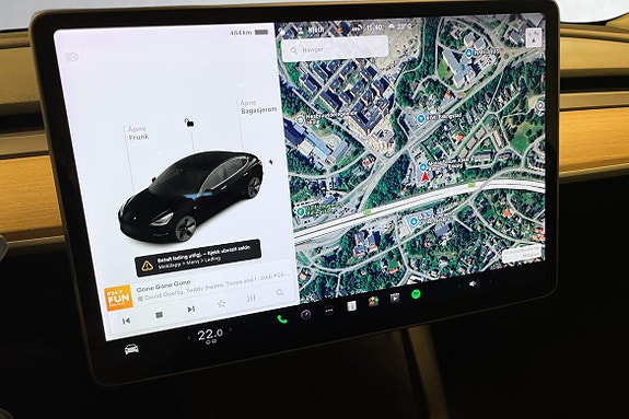 Stor touchskjerm med navigasjon, musikk og bilinnstillinger