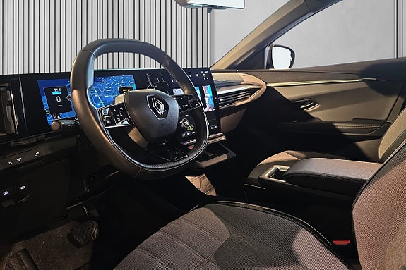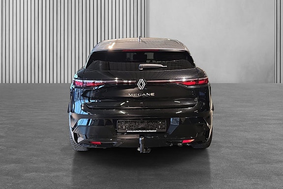 Selger en stilren og velholdt svart Megane med kontrast i grått tak – en bil som både ser bra ut og er god å kjøre.